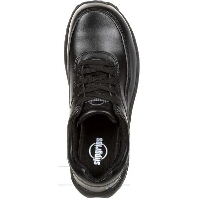 SlipGrips FedEx Composite Toe Slip-Resistant Work Athletic Shoe is an all black athletic style with the new DragonGrip outsole. These shoes are made with a cement construction that makes them light for all day comfort.For safety, this shoe has a composite toe and a nylon shank. It also meets ASTM standards for Electrical Hazard. Inside the shoe you have a mesh lining with a removable PU footbed.The new Slip-resistant DragonGrip outsole is made with an exclusive advance technology rubber compound which consists of hundreds of 3-dimensional hexagonal pylons. This allows the shoe to adjust to changing surfaces such as liquid, grease, water and soap better than competitive patterns. Reducing the slip and fall incidents on the job.Get an athletic style that is light, comfortable and provides all the safety you will need for the job.