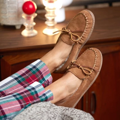 These luxurious indoor-outdoor slippers are handmade from soft sheepskin. Genuine sheepskin gives your feet warm softness while naturally wicking moisture away from your skin and allowing feet to breathe. With classic rawhide laces and a sturdy sole, you can easily take these sheepskin slippers outside on the go.