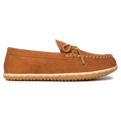 Master comfort while on-the-go or lounging the day away at home in soft genuine suede and warm berber lining. Keep comfy both indoors and out with a removable contoured footbed and heavily treaded MinnTREAD sole for traction.
