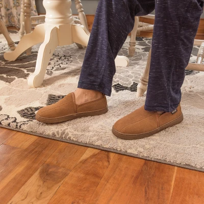 MUK LUKS is bringing back Men’s slippers! We are still giving men the comfort and style on their feet this season. Our slipper is extremely comfortable, and easy to slip on and wear! 100% cow suede with 100% polyester Berber lining. With a TPR sole that can be worn inside or outside! Available in whole sizes 9-13 in Chocolate and Tan. Imported. Wipe with Damp Cloth. Do Not Bleach. Dry Flat.Details:-TPR Sole-100% Polyester Faux Fur Insole-100% Cow Suede Upper-100% Polyester Faux Fur Lining