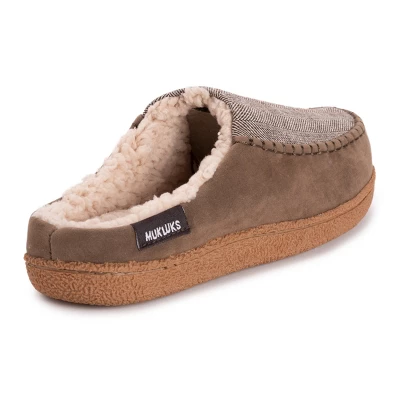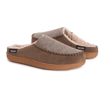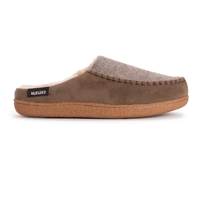 Relax like a pro in MUK LUKS Men’s Staughton Slippers. This cozy scuff will keep feet comfortable with plush foam insoles and the durable sole allows you to relax indoors or out. Wipe with damp cloth, Dry Flat, Do not Bleach. Imported.-Indoor/Outdoor TPR Sole-100% Polyester Insole-100% Polyester Upper-100% Polyester Lining-Multiple Color Options -US Men’s Whole Sizes 9-13