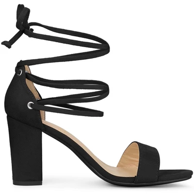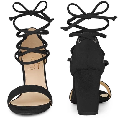 - [ FEATURES ]: lace-up; open toe; strappy; chunky heels sandals