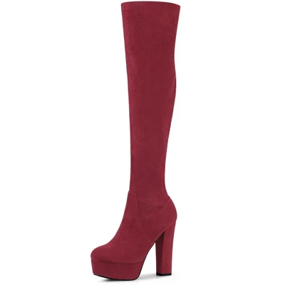 With a classic platform high heel, these thigh-high boots are must-have staples for followers of fashion. The slight stretch suede vamp is smooth to the touch and comfortable to wrap. Over Knee High Boots; Side Zipper Closure; Block High Heel; Comfortable Platform; Vamp: Faux Suede; Outsole: Rubber; Heel: ABS; Heel Height: 5 1/8 inches; Platform Height: 1 4/7 inches.