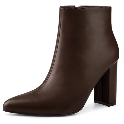- Block Heel Ankle Booties, Pointy Toe, Side Zipper