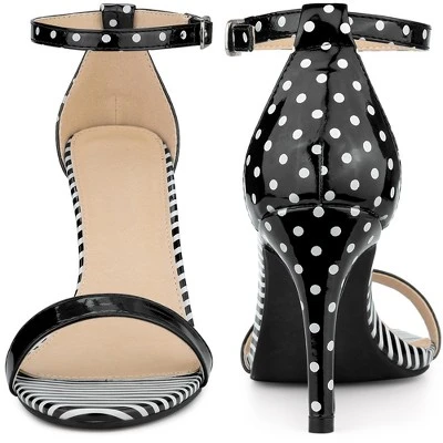 Perphy Women’s Stiletto Heels Stripe Polka Dots Ankle Strap Sandals