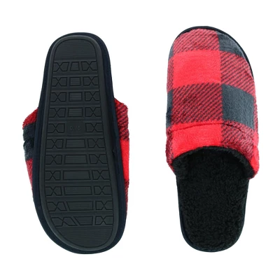Easy to slip on and off, these closed toe slide style buffalo plaid slippers are perfect to wear all year-round. The slippers feature a soft supportive insole with cozy High Pile Fleece lining and a slip resistant sole to prevent slipping and sliding. Grab a pair for yourself or as a gift for the holidays, birthdays, and more!