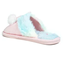 Limited Too Girl’s House Slippers In Pink With Pom Poms And Colorful Fuzzy Footbed