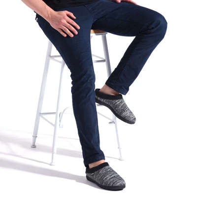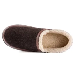 - Easy slip-on clog style slipper with a knitted elastic collar