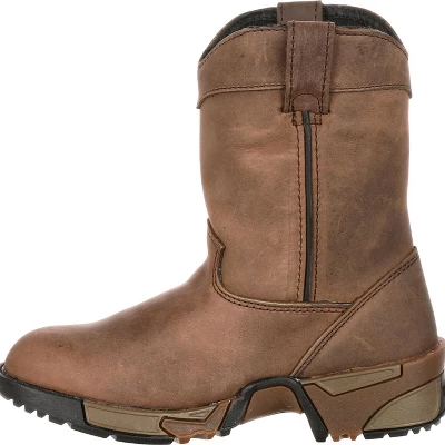 There is nothing more important to a child’s imagination than the opportunity to play outside, and there is nothing more important to a parent’s peace of mind than knowing that their child is safe and comfortable. As versatile as they are durable, these Rocky® kids’ boots sustain both of these needs!Carefully crafted from full-grain leather, these six-inch boots offer high-quality resilience against outdoor elements. A round toe and a rubber Aztec sole guarantee comfort for active feet. Rocky Kids’ Aztec Pull-On Boots combine practical materials like polyurethane and rubber to prevent wear and tear and keep a child’s foot feeling great as they explore and enjoy each day. The soft interior lining ensures coziness, while the tough exterior remains durable.The easy-to-match color of these kids’ brown boots makes getting dressed in the morning incredibly easy, while convenient pull straps on either side of these boots add to the simplicity. These kids’ shoes are the perfect blend of practical and fun.If you’re looking for easy-to-wear kids’ outdoor boots that will let your child romp and stomp as their heart desires, the Rocky Kids’ Aztec Pull-On Boots are an easy choice!