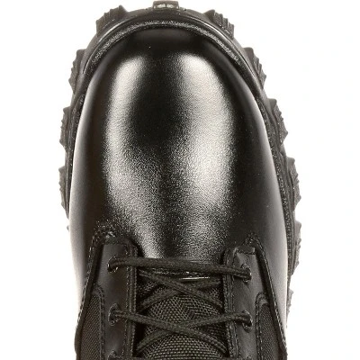 These hard-wearing Rocky® Alpha Force Waterproof Public Service Boots are made with black full-grain leather and 1000-denier nylon fabric. These lightweight, strong fabrics hold up even in the most extreme working conditions. These public service boots have been built with Rocky waterproof construction; this creates a barrier that is guaranteed to keep water out, so your feet will remain completely dry. The Air-Port™ footbed is made from polyurethane and absorbs shock, but always reverts back to its earliest shape. The cushion footbed specifically targets your heel and metatarsal ridge, giving you support and comfort.This boot features a non-metallic stabilizer, and has a non-marking RigiTrac™ outsole that provides oil and slip resistance. Whether you’re looking for durable black work boots, tactical boots, a great pair of waterproof boots or superior law enforcement boots… These Rocky Alpha Force boots are the right choice to help you get the job done!