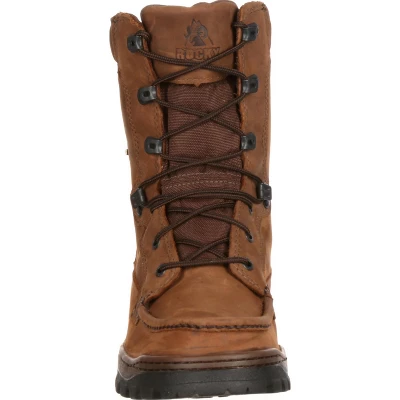 This Rocky Outback’s upper was assembled with premium full-grain leather; while it is certainly very soft, the material has great durability and strength. Having a lace-up design on this outdoor boot is fantastic, because it allows you to adjust the fit. This boot has a fully padded collar and tongue to help keep out debris. After all, no one wants to walk around with rocks and dirt rolling around in their boots while they are trying to enjoy their experience outdoors. GORE-TEX® fabric has been added into the design of this footwear; having it ensures that these 9″ outdoor boots will remain durably waterproof, breathable and windproof. To enhance your level of comfort within these #8729 boots, a Rocky Terra Suspension footbed has been inserted. This polyurethane insert helps cushion your steps and aids in absorbing shock. Are you hesitant about the boot’s grip? Don’t be, the Outback rubber outsole provides fantastic traction and allows your footing to be steady when you’re walking on rugged terrain. Whether you’re headed for the hills or going to work, this rugged and good-looking Rocky Outback GORE-TEX® Outdoor Boot (#8729) with moc-toe styling will keep you dry and comfortable.