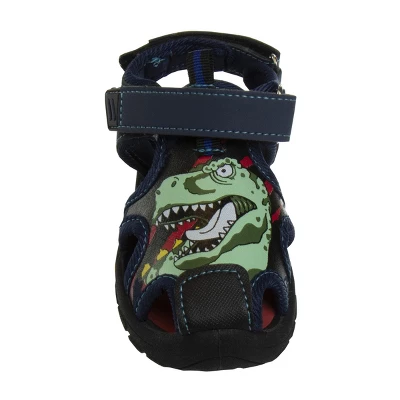 Rugged Bear Boys Mighty Dinosaur Hook and Loop Closed Toe Sport Sandals. (Toddler/Little Kids). These great outdoor sandals are the perfect shoe for all your boy’s summer adventuresThe cool and MIGHTY Dinosaur will guarantee your kid will want to wear these everyday! This open design offers your kids the best comfort, perfect for the beach, pool, any casual spring or summer assemble.Perfect for all kinds of casual occasions, these shoes are just the right fit for family outings. playing with friends, or going to the park.