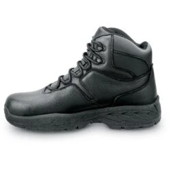 PU upper. Nylon linings. Molded removable PU cup insole. SR Max MaxTrax oil and slip resistant rubber outsole. Nonmetallic. Soft toe. No safety toe cap.