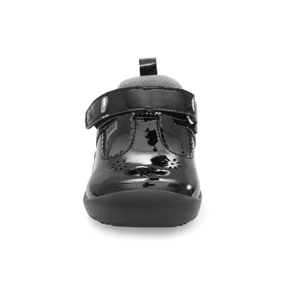 - Toddler’s T-strap shoes with easy hook and loop closure