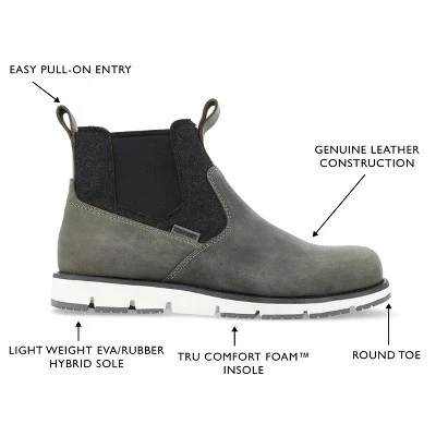 A go-to boot you can throw on in an instant, the Holloway boot by Territory. This expertly designed chelsea boot features a round-toe and water-resistant leather uppers with a felt cuff detail at the heel. A 6 mm Tru Comfort Foam™ Footbed adds cushion to your every step, and an EVA midsole with a rubber outsole makes them super durable but light.