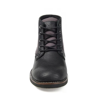 A rugged casual work boot by the experts at Territory. This high-top silhouette is crafted with colored fabrics contrasted with a rich, authentic leather accent at the toe and heel. The Summit is finished with a lace-up closure and a durable rubber sole framed by topstitch details for a sharp look.