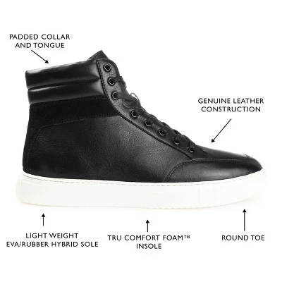 Upgrade your everyday style with the Clarkson by Thomas & Vine. These high-top sneakers are unbelievably comfortable with a cushioned collar at the ankle and an 8 mm Tru Comfort Foam™ insole. Genuine leather fastened by a lace-up closure and a durable EVA/rubber hybrid outsole finish the look.