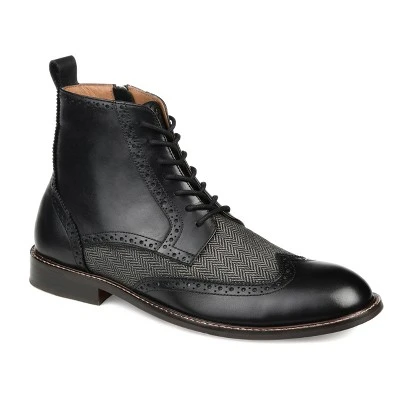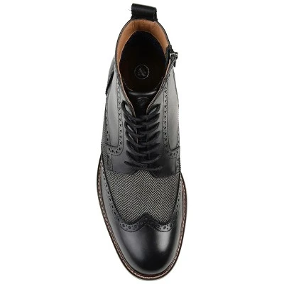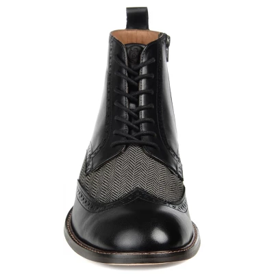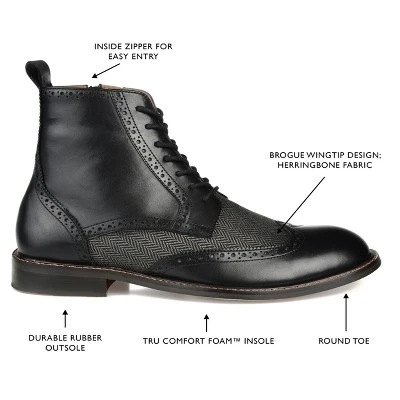 The Jarret is a handsome wingtip high-top boot crafted with genuine leather by the experts at Thomas & Vine. This shoe features contrast herringbone fabric details, a zipper entry, and a comfortable memory foam insole for all-day wear.