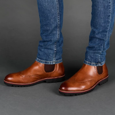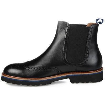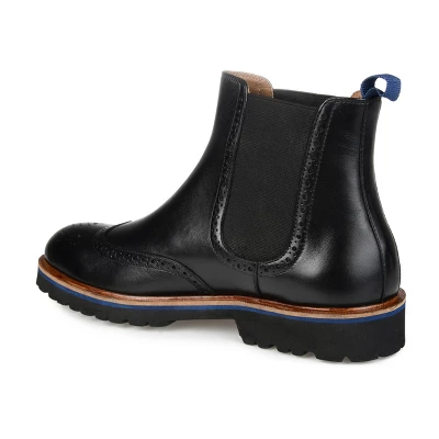 A durable design with dapper details, the Nash by Thomas & Vine. This ankle-high boot is crafted with rich genuine leather accented by a wingtip element enhanced with brogue and medallion embellishments. Stretch gore paneling at the shaft provides a forgiving fit and a lightweight EVA outsole lined with a 6 mm Comfort Foam™ insole makes them even easier to wear.