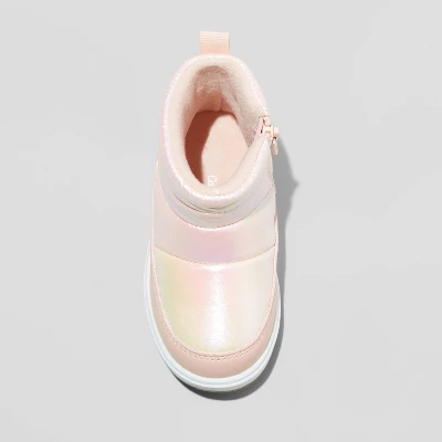 Make sure your little one moves through cool-weather outings in comfy style with these Archie Puffer Boots from Cat & Jack™. The puffer boots feature a round-toe design with fleece lining and a cushioned footbed to provide their feet all-day warm and cozy comfort. Designed with a side zipper for easy on and off, these medium-width boots make a great pairing with a variety of their fave outfits.