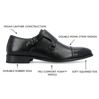 A dapper look you can style with your best suits, the Atticus by Vance Co. This must-have monk strap dress shoe is topped with soft vegan leather and buckled straps for an upscale look. A 6 mm Tru Comfort Foam™ footbed and an elastic gusset make them super comfortable.