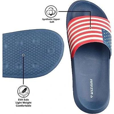 The Vizari ‘USA SS’ Slide Sandal is a comfortable lightweight soccer and sports slide sandal that’s great for everyone. Made from a durable and breathable PU and EVA material. Built with solid thick footbed EVA sole to enhance cushioning.