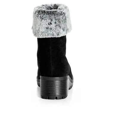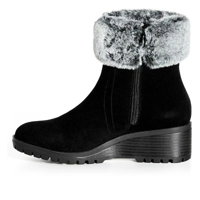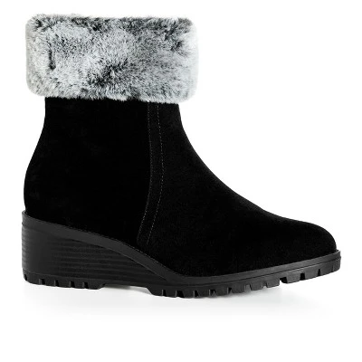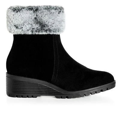 Flaunt your inner fashionista with the black Callie Ankle Wedge. You’ll love its faux fur trim design, complete with a comfortable wide fit, treaded soles and round toe. Our Callie Ankle Wedge is ideal for the season with its faux fur trim and treaded sole. Whether you’re styling it up or elevating your everyday looks with the slight heel of this wedge, you’ll always look your best in them. Pair it with jeans, an open cardigan, and a long-sleeved top for your weekend plans.Casual and effortless, Evans makes everyday style oh-so-easy. This beloved English brand offers quality, curve-loving pieces for any occasion that will make you look and feel your best. From easy-going dresses to statement essentials, Evans is comfortable, tasteful and perfect for your everyday wardrobe. Available in sizes 14 – 32.